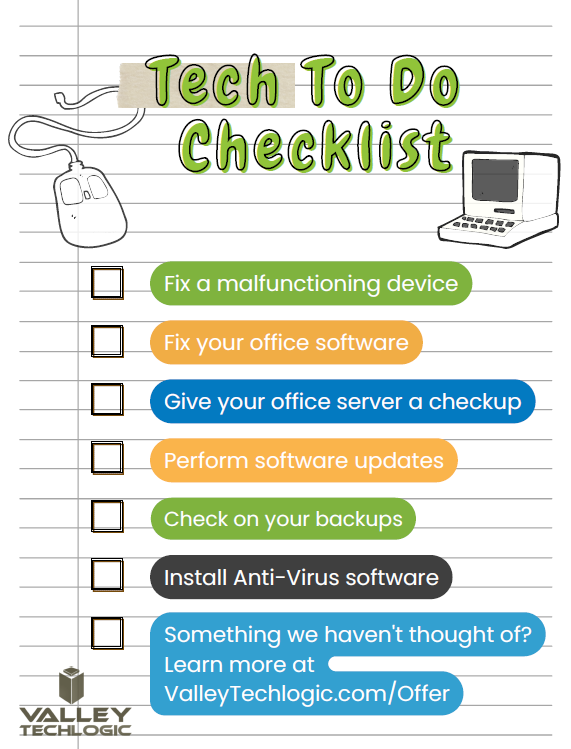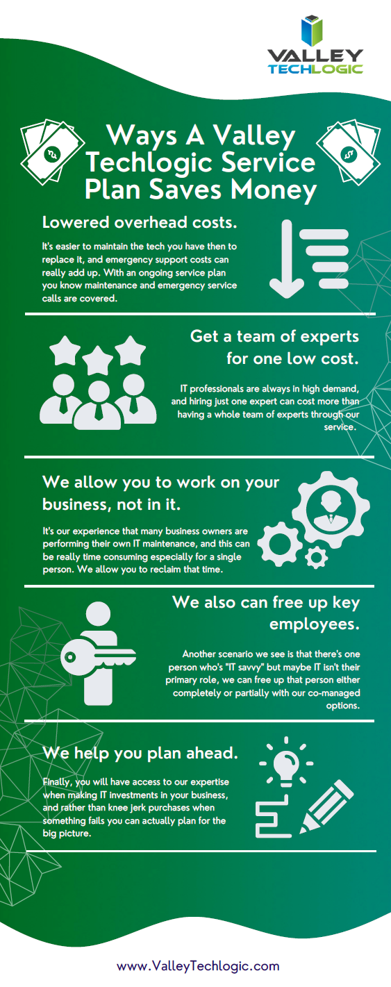 Of course, the best way to improve your business’ technological prowess is to engage with a technical provider that can knows the ins and outs of today’s modern technology and can best support your efforts to grow your business. That’s where Valley Techlogic comes in.