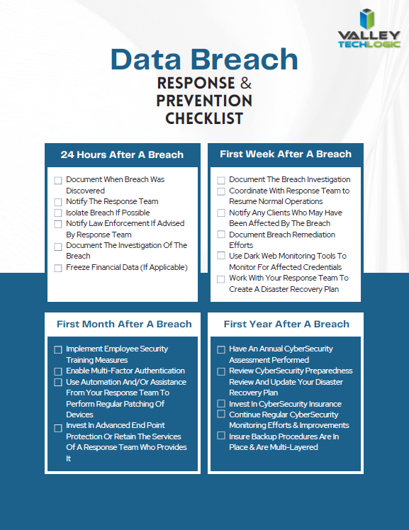 Proactive services (including cyber security) are a keystone offering for Valley Techlogic. With ransomware threats becoming more sophisticated and lucrative year over year, you need a team behind you to protect against outside threats. Below are five ways Valley Techlogic approaches cybersecurity protection for our clients: