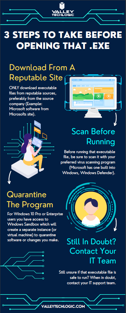 While this topic falls outside our normal wheelhouse we wanted to touch on it and offer our advice on safe picks for media players. It’s always a good idea to do your research when downloading any software. Here is our three-step guide for what you should do with any newly downloaded executable file:While Valley Techlogic can’t help you with your media playing setup at home, we can help you navigate software choices for your business. Set up a consultation with us today to learn more.